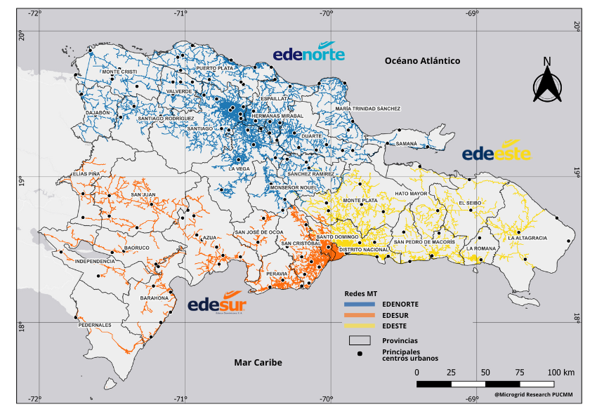 Mapa de Líneas de Distribución de Media Tensión (MT) en RD- Cobertura regional y desafíos en la gestión
